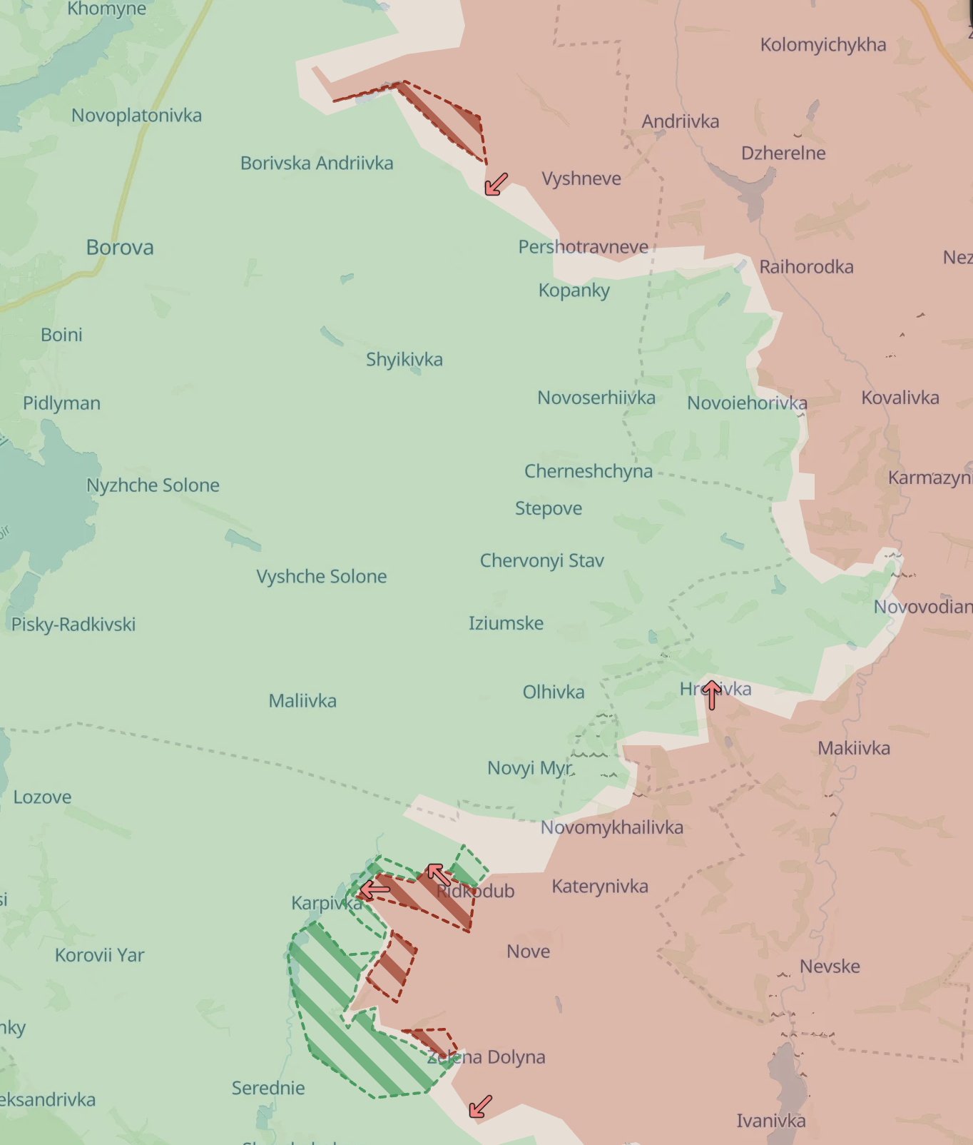 Также у РФ новые продвижения на смежных Лиманском и Харьковском направлениях - под Редкодубом и в направлении Боровой.
