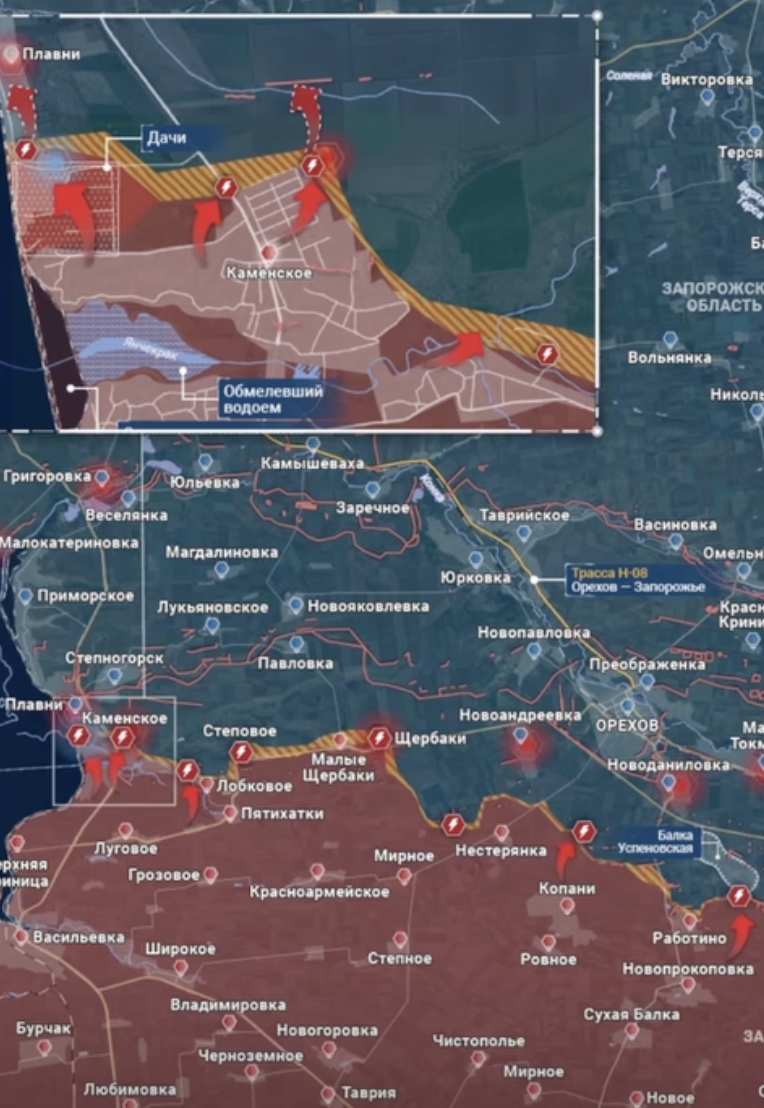 Армия РФ продвинулась в Каменском (ближайшее направление на Запорожье) и закрепилась уже на подступах к Степногорску, сообщает лейтенант ВСУ Алекс. "Ситуация на направлении затруднена", - пишет он.