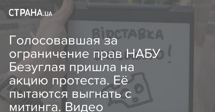 Голосовавшая за ограничение прав НАБУ Безуглая пришла на акцию протеста. Её пытаются выгнать с митинга. Видео