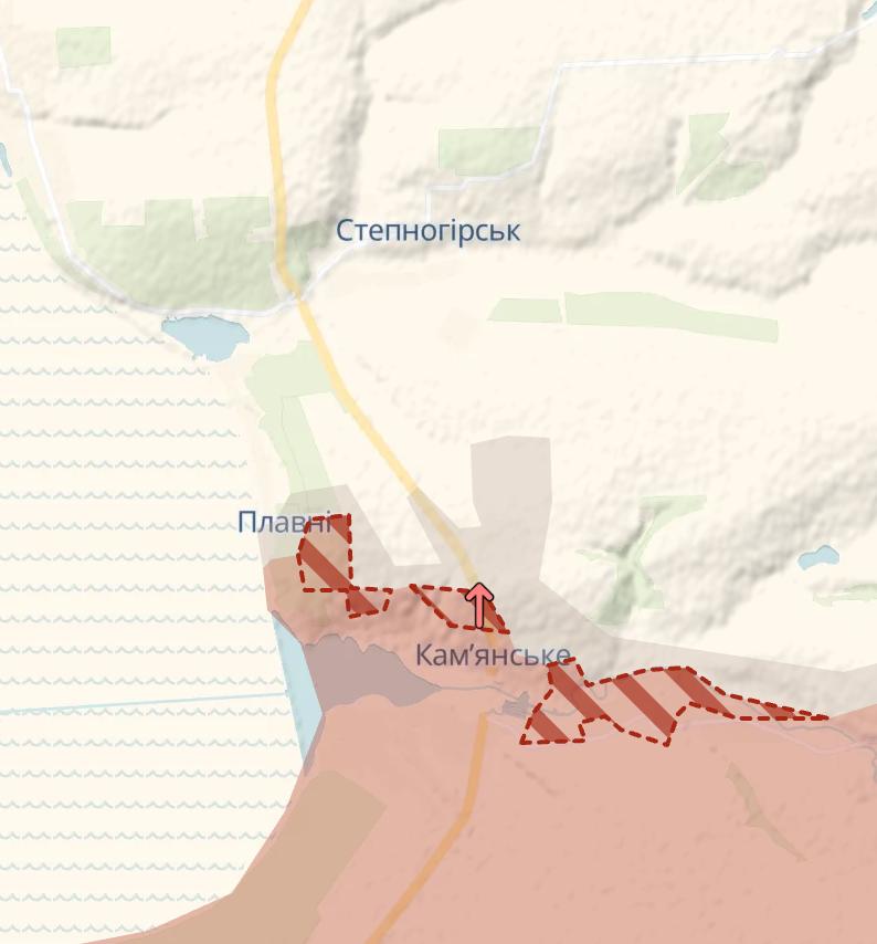 Deep State подтверждает продвижение армии РФ в Каменском и Плавнях. Однако присутствие российских военных на окраинах Степногорска карта ресурса пока не фиксирует.