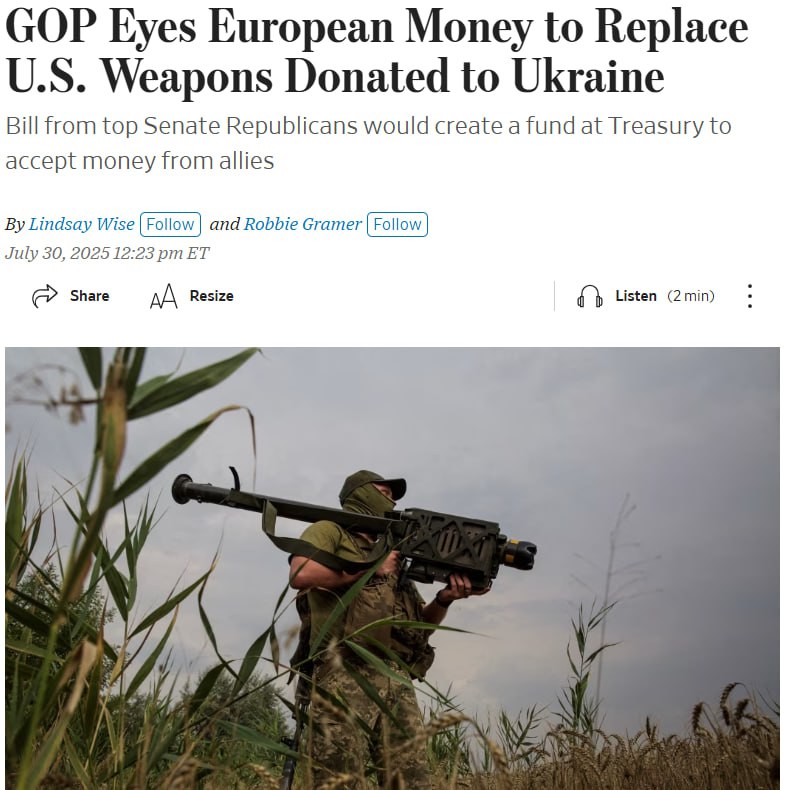 Республиканская партия США разработала механизм, как вооружить Украину американским оружием за европейские деньги.