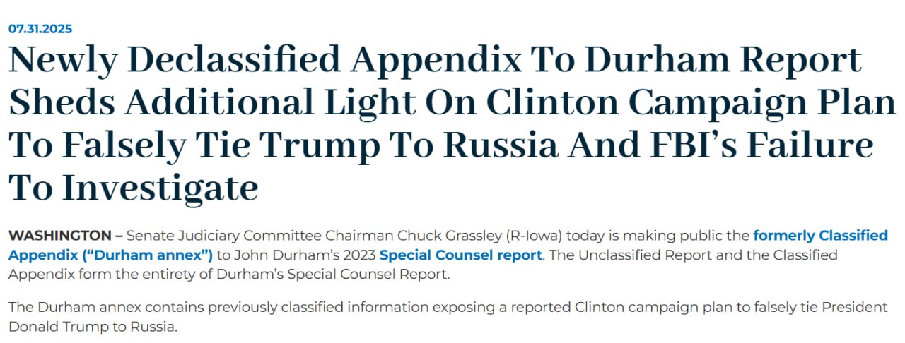 Это следует из рассекреченного приложения к докладу спецпрокурора Джона Дарэма, содержание которого опубликовано на сайте Сената США.