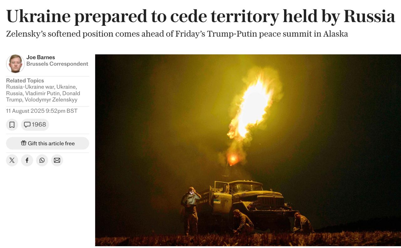 7.47 Украина отказывается от предложений Трампа, но готова "уступить территорию, уже удерживаемую Россией", пишет британская The Telegraph.
