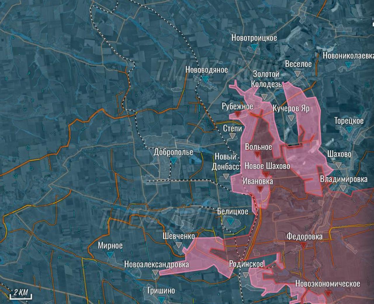 В результате 11-километрового (согласно украинским данным) рывка, россияне вышли к северо-востоку от Доброполья, перерезав дорогу на Краматорск и Константиновку.