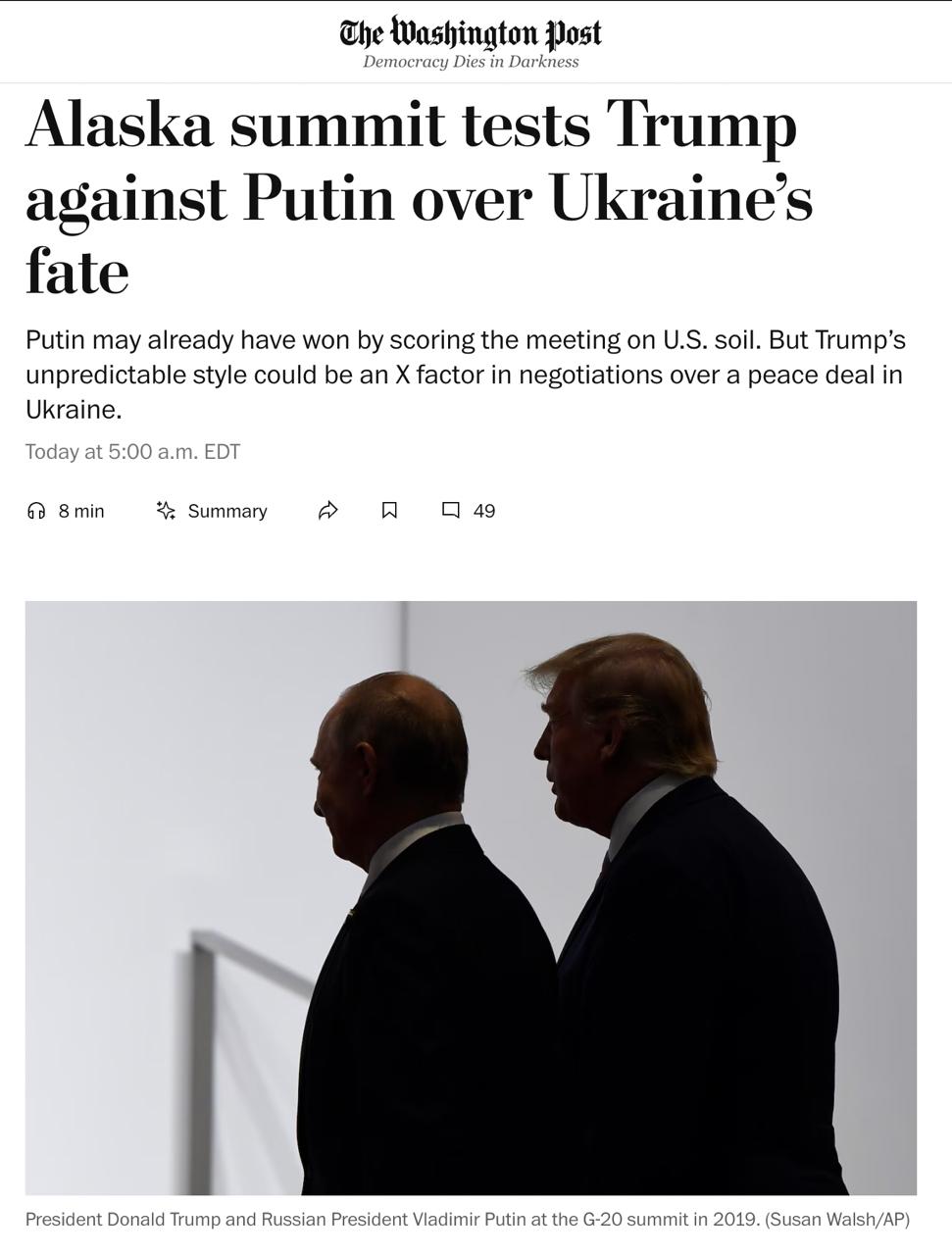 Другое издание, CNN, со ссылкой на американского чиновника сообщает, что Трамп может досрочно покинуть встречу с Путиным. По словам собеседника журналистов, в развитии переговоров на Аляске "остаются все варианты", включая уход главы Белого дома, если он сочтет, что Путин не настроен заключить сделку.