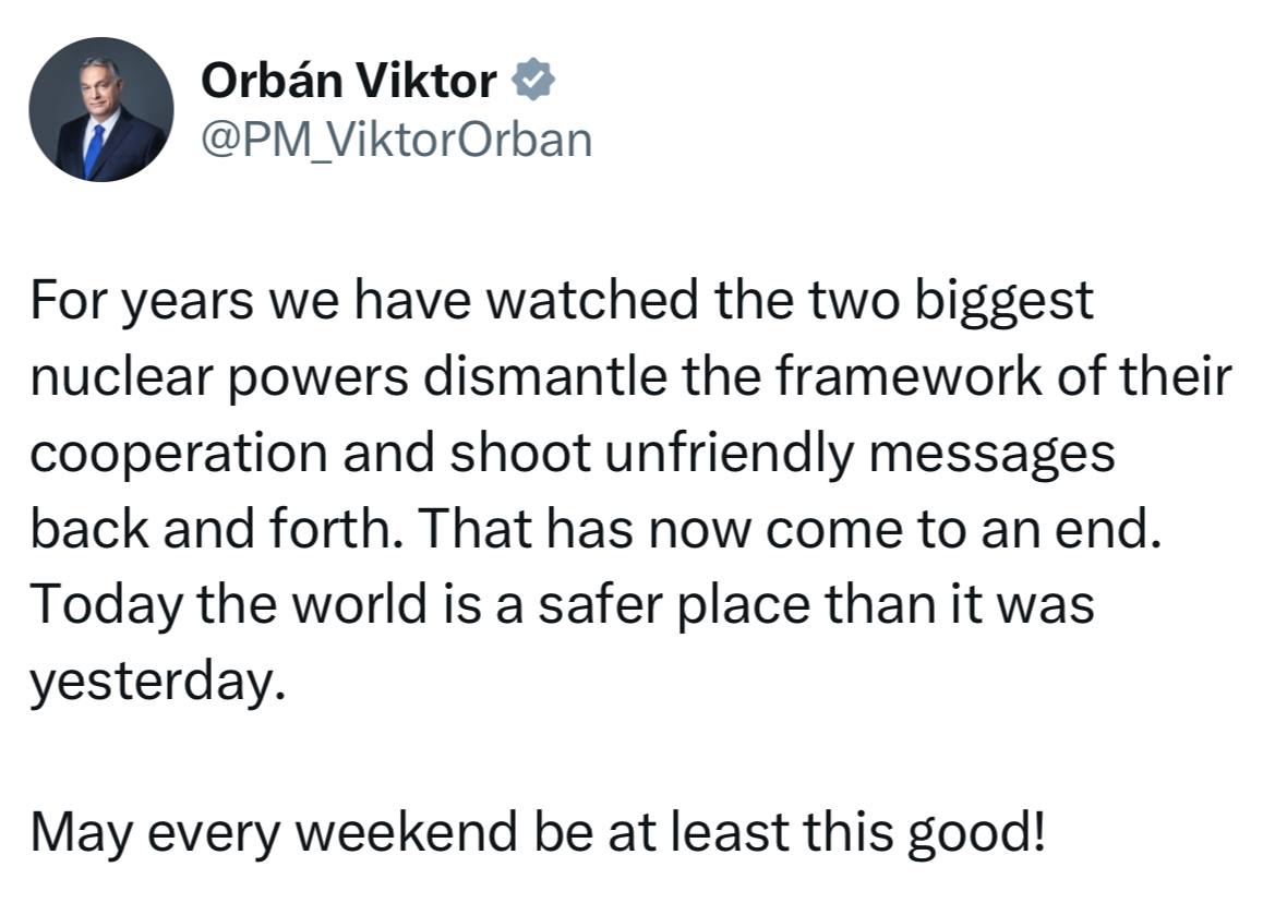 Оставил свою реакцию в Х и венгерский премьер Виктор Орбан.