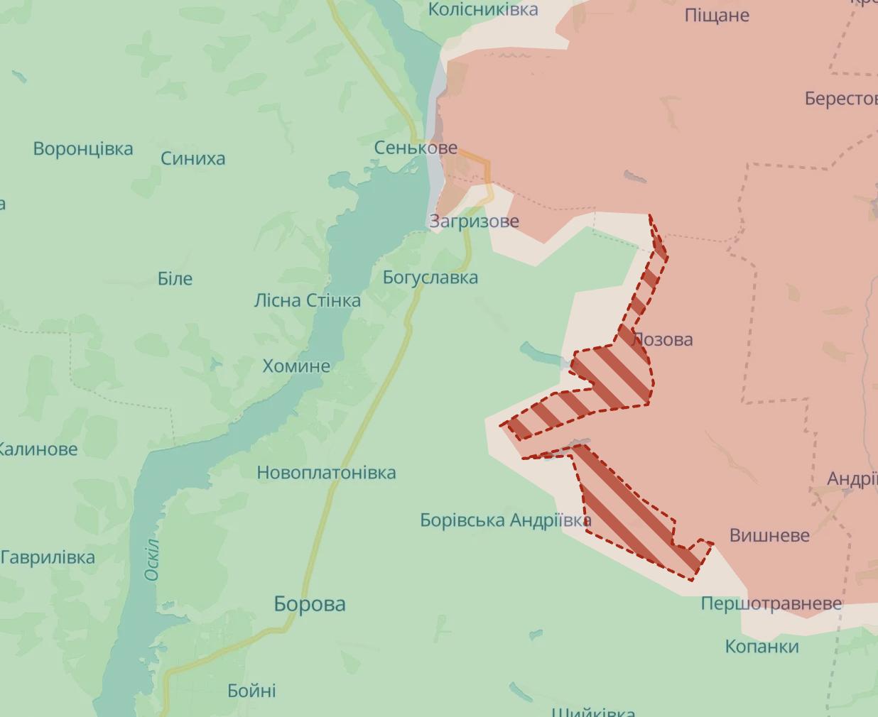 Они масштабно продвинулись в направлении Боровой Харьковской области, как сообщает Deep State, там захвачено село Зеленый Гай, и западнее Лозовой.
