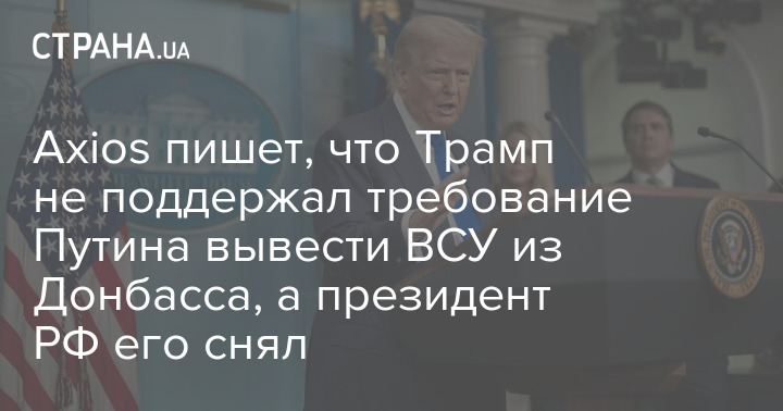 На фоне заявлений целого ряда западных изданий, что президент США Дональд Трамп в субботнем разговоре с украинским главой Владимиром Зеленским и европейцами поддержал требование Владимира Путина вывести ВСУ из Донецкой области, диссонансом прозвучала информация Axios.