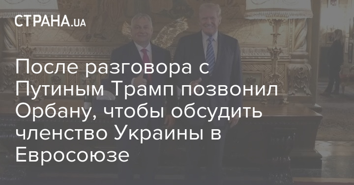 После разговора с российским лидером Владимиром Путиным президент США Дональд Трамп позвонил премьер-министру Венгрии Виктору Орбану по вопросу членства Украины в Евросоюзе.