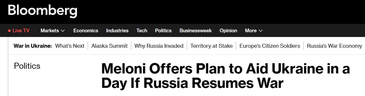 Мелони выступает за то, чтобы обязать союзников Киева за 24 часа согласовать военную поддержку, если конфликт с Россией возобновится.