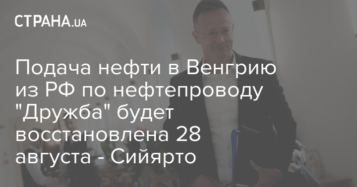 Подача нефти в Венгрию из РФ по нефтепроводу "Дружба" будет восстановлена 28 августа - Сийярто