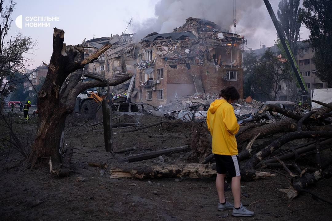 07:49 Кадры разрушенного жилого дома на Дарнице в Киеве, где были погибшие после обстрела.