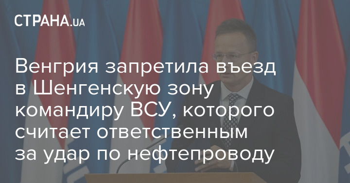 Венгрия заявляет, что запретила въезд в Шенгенскую зону командиру ВСУ, которого считает ответственным за удар по нефтепроводу "Дружба".