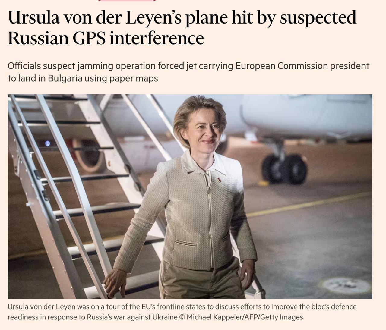 Россия могла вывести из строя службы GPS на борту самолета главы Еврокомиссии Урсулы фон дер Ляйен, из-за чего она не могла приземлиться в аэропорту Болгарии.
