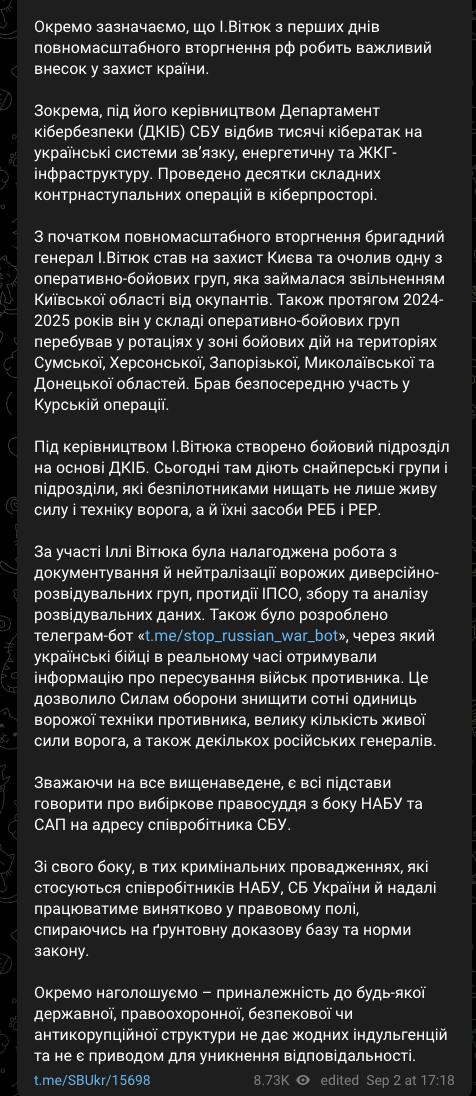 В свою очередь в СБУ назвали "местью" и "избирательным правосудием" подозрение НАБУ против своего сотрудника. В спецслужбе отметили, что это "ответ на обоснованное задержание СБУ нескольких сотрудников НАБУ в конце июля".