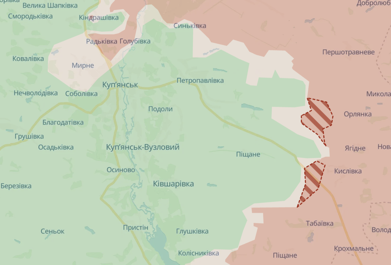 "Чтобы увеличить шанс закрепления в городе, противник пытается овладеть окружающей местностью, поэтому идут бои, в частности, за населенный пункт Мировое (к западу от Купянска - Ред.), который, как и Радьковка, должен стать местом накопления пехоты", – также говорится в сообщении.