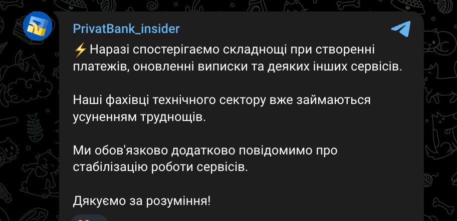 Компания сообщает о трудностях при создании платежей, обновлении выписки и некоторых других сервисов.