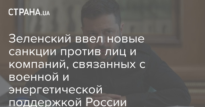 Зеленский ввел новые санкции против лиц и компаний, связанных с военной и энергетической поддержкой России