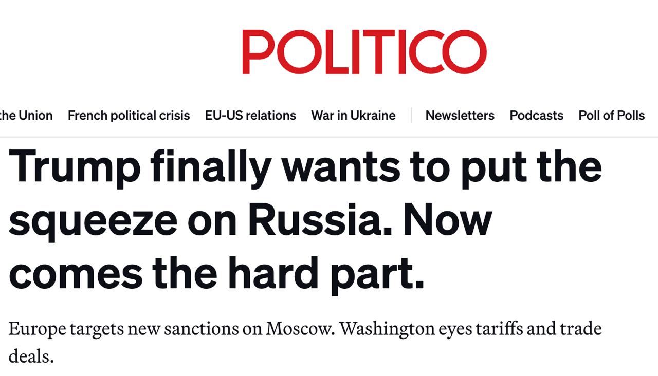 При этом другие западные СМИ пишут о разногласиях между США и Европой по поводу давления на Россию. Белый дом требует от европейцев ввести огромные пошлины против Китая с Индией, на что в Европе идти не хотят.