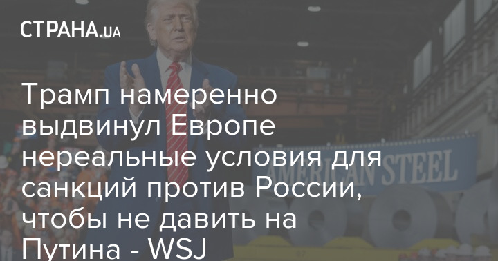 Трамп намеренно выдвинул Европе нереальные условия для санкций против России, чтобы не давить на Путина - WSJ