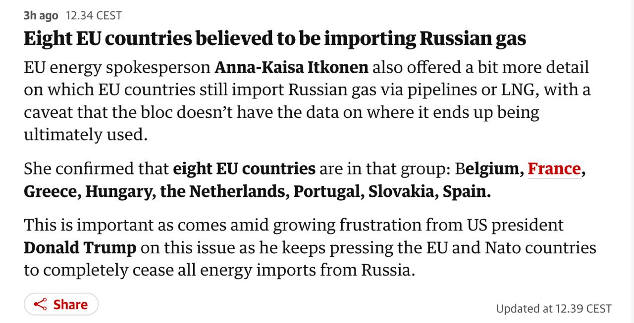 Также США продолжают настаивать на том, чтобы Евросоюз как можно быстрее отказался от российского газа. Министр энергетики США Крис Райт заявил, что ЕС может полностью перейти на американский сжиженный природный газ в течение полугода- года.