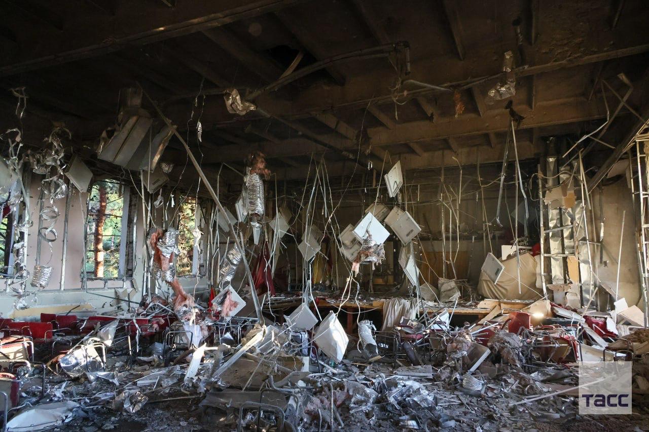 Также подверглась разрушениям соседняя школа, где дрон залетел в актовый зал (на видео).