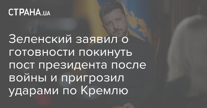 Зеленский заявил о готовности покинуть пост президента после войны и пригрозил ударами по Кремлю
