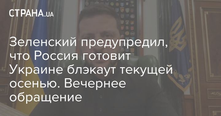 Зеленский предупредил, что Россия готовит Украине блэкаут текущей осенью. Вечернее обращение