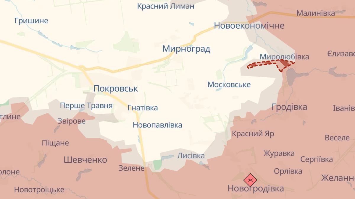 Россияне впервые за долгое время продвинулись к востоку от Мирнограда - на 4-5 километров со стороны Миролюбовки, сообщает Deep State.