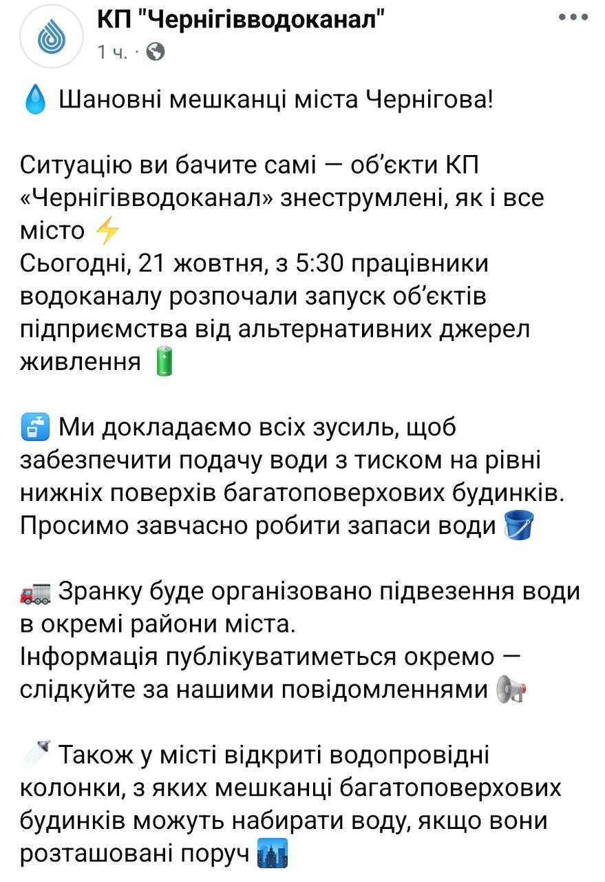 7.54 Чернигов полностью обесточен, заявил местный водоканал.
