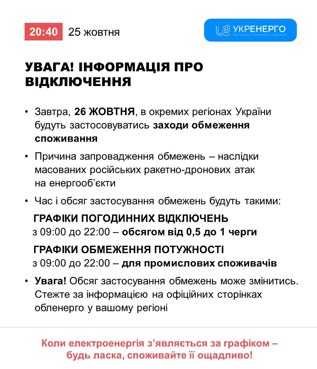 20:54 Завтра по Украине будут отключать свет с 9 до 22 часов.