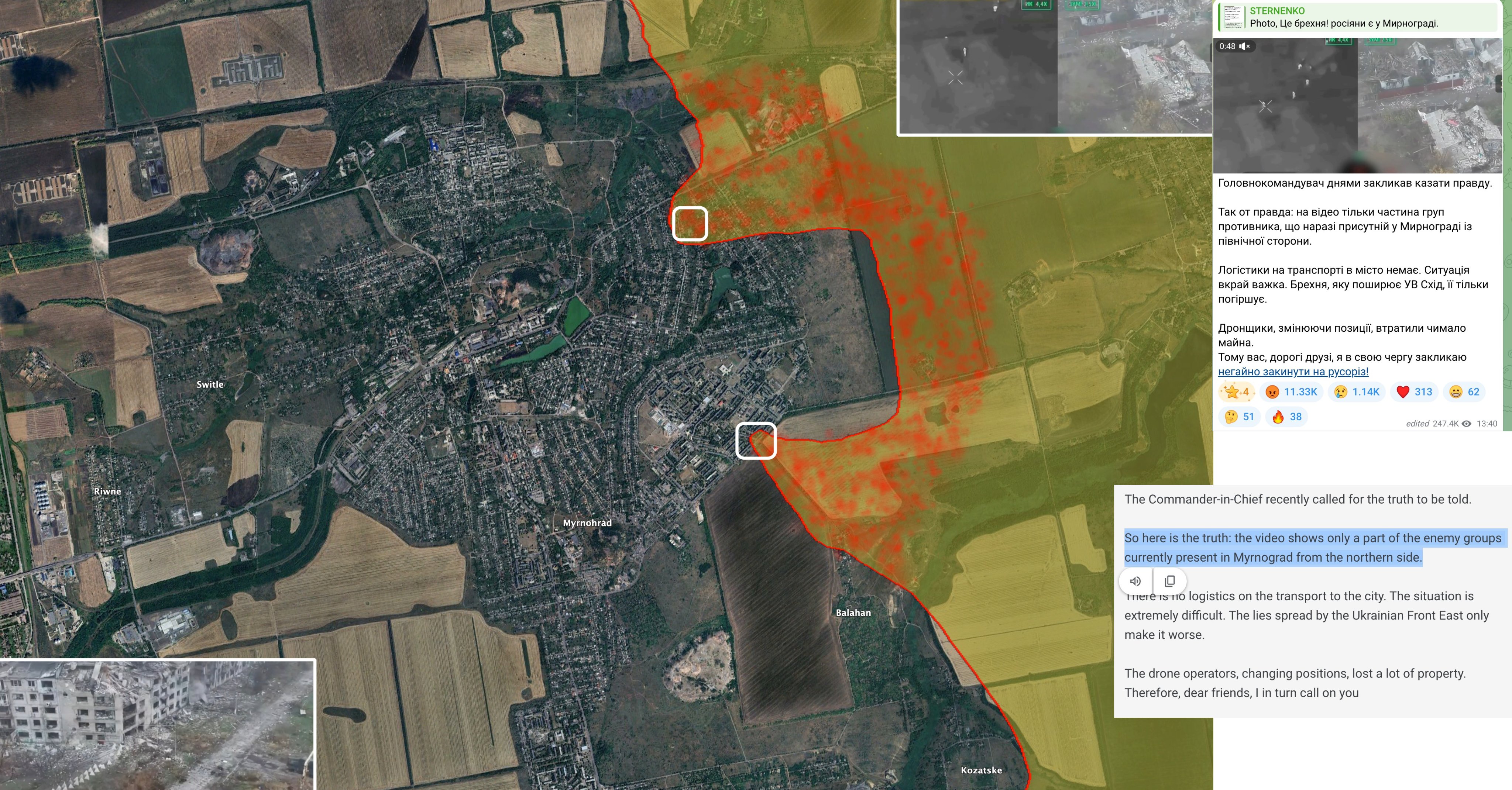 Касаемо Покровска и Купянска - Путин сегодня приказал минобороны РФ обеспечить проезд иностранных журналистов в зону боевых действий, чтобы те могли удостовериться в "окружении" городов. Для этого минобороны РФ заявило о готовности прекратить огонь на 5-6 часов.