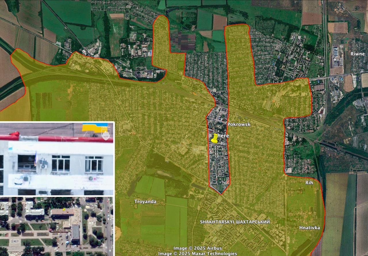 Вчера 425-й полк ВСУ "Скала" опубликовал видео с установкой украинского флага в центре Покровска - в районе горсовета. Военные заявили, что здание освобождено от россиян.