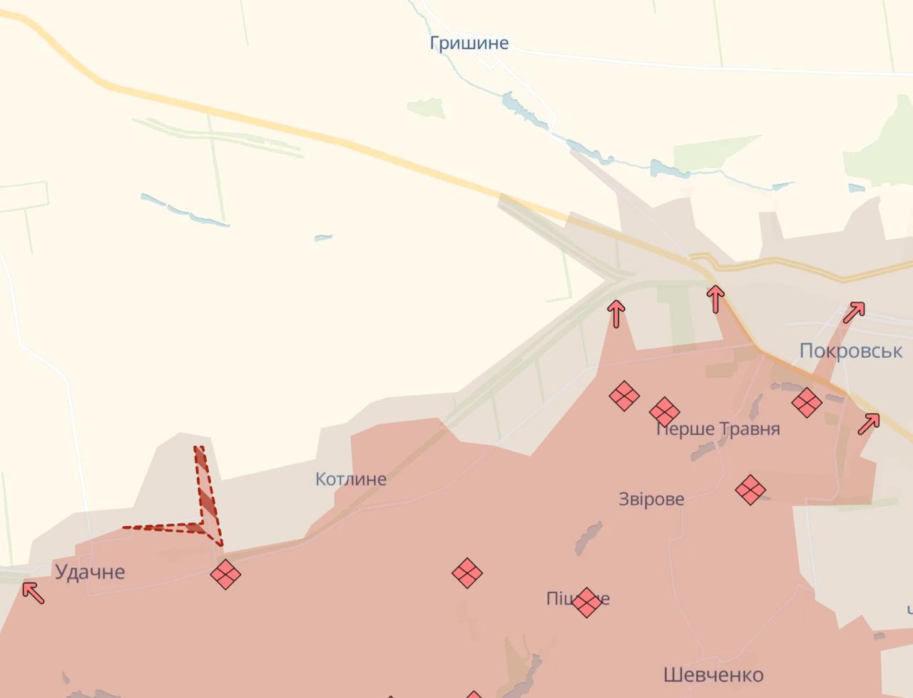 Армия РФ резко продвинулась к Мирнограде, что около Покровска, и возле Удачного в направлении трассы на Павлоград, сообщает Deep State.