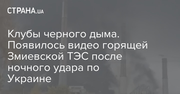 Клубы черного дыма. Появилось видео горящей Змиевской ТЭС после ночного удара по Украине