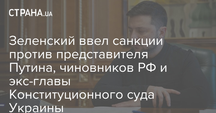 Зеленский ввел санкции против представителя Путина, чиновников РФ и экс-главы Конституционного суда Украины