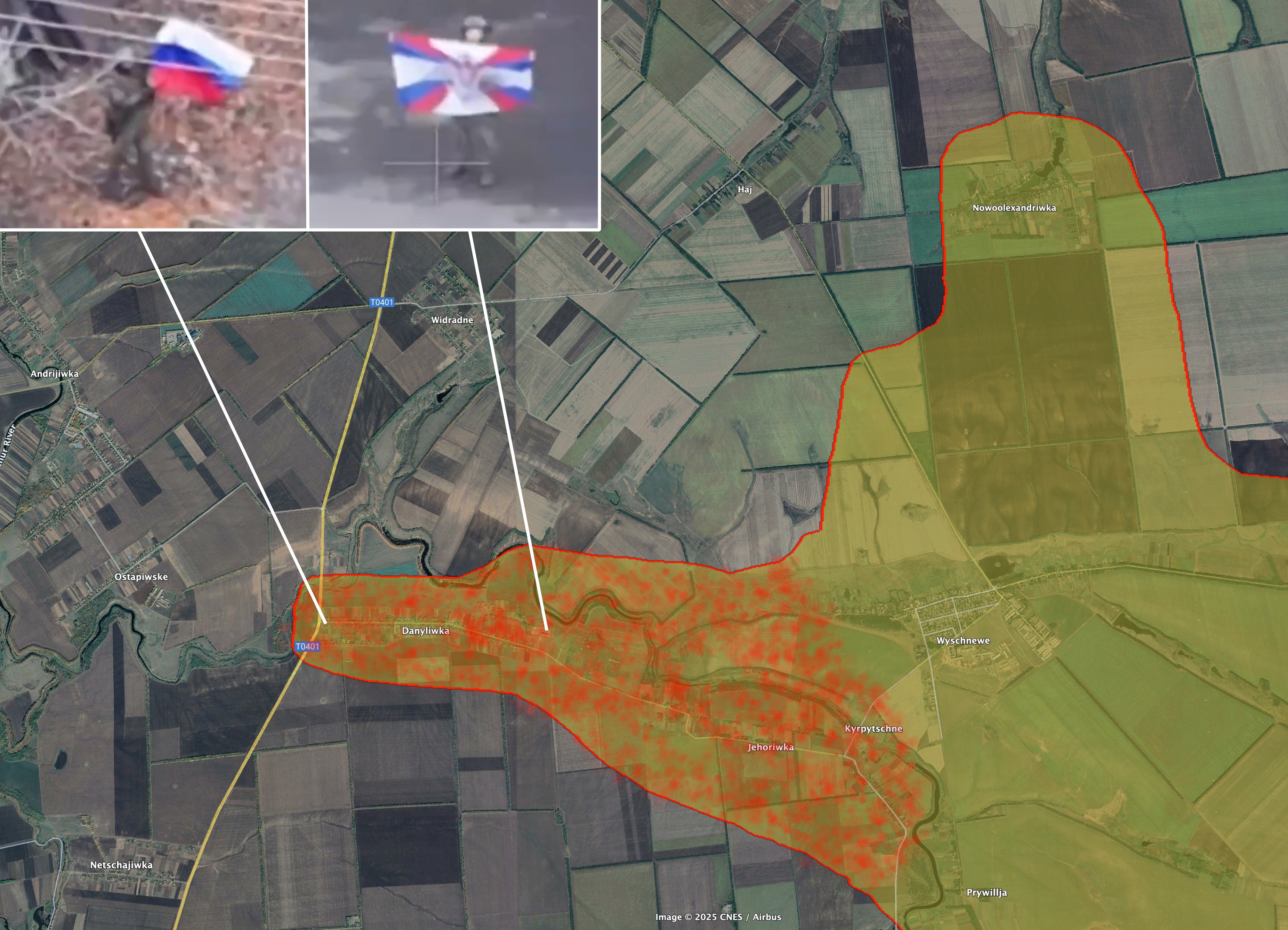 Также у россиян крупное продвижение в Днепропетровской области. Немецкий военный обозреватель Юлиан Рёпке заявляет, что россияне захватили Кирпичное, Егоровку и Даниловку.