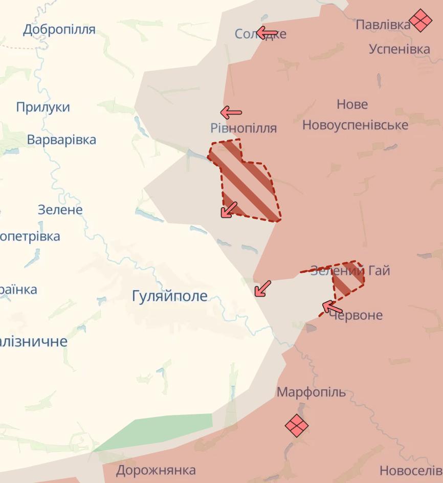 Армия РФ снова продвинулась около Гуляйполя, сообщает Deep State. Украинские военные сообщают, что на восточные окраины поселка начали заходить российские ДРГ.