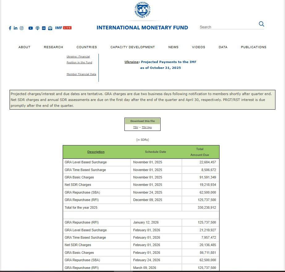 Об этом свидетельствует последний официальный график МВФ на 1 октября 2025 года, который проанализировала "Страна".