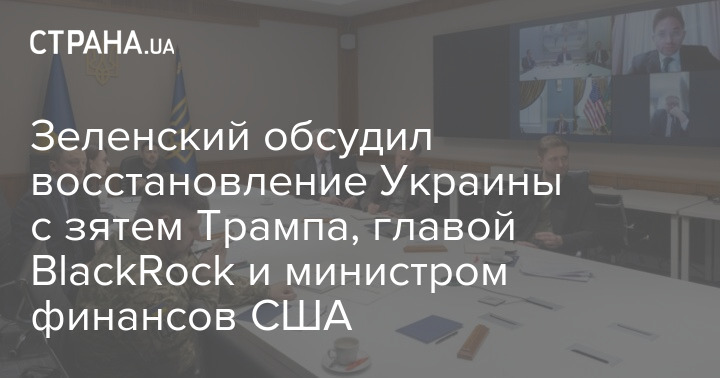 Зеленский обсудил восстановление Украины с зятем Трампа, главой BlackRock и министром финансов США