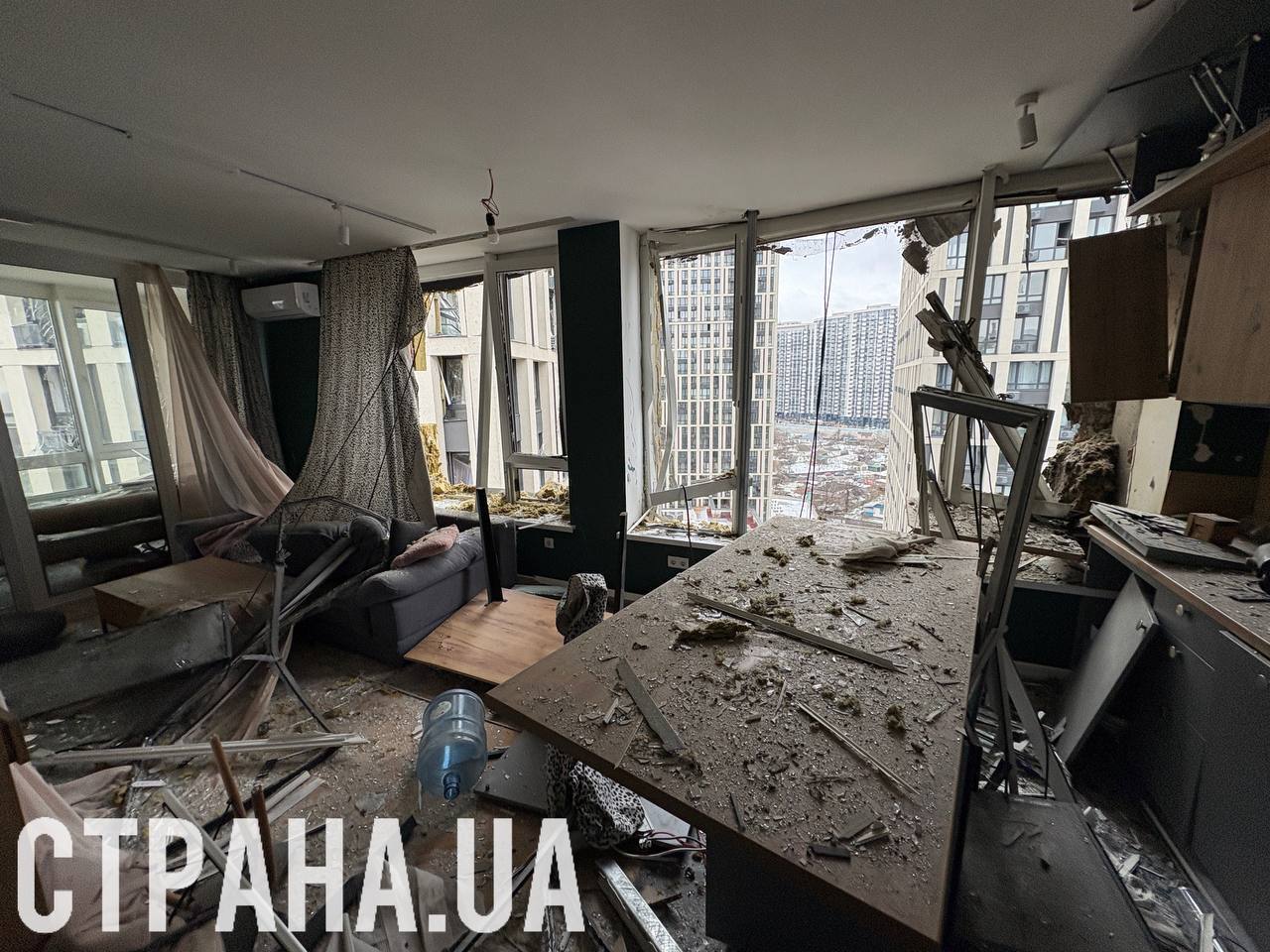 13:15 Видео и фото из квартиры, которая пострадала во время удара по многоэтажке в Киеве.