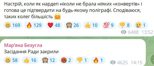 Народный депутат от "Слуги народа" Марьяна Безуглая в свою очередь сообщила, что на фоне следственных действий, которые НАБУ проводит в отношении нардепов, заседание Верховной Рады было закрыто.