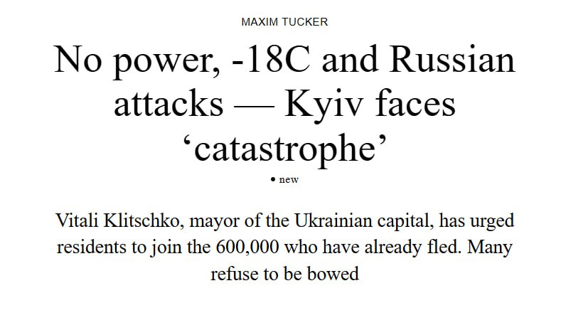 "Выступая из киевской мэрии, где сотрудникам запретили пользоваться туалетами из-за отсутствия водоснабжения, он сказал, что Зеленский отказал ему в просьбе о встрече для обсуждения кризиса, хотя производство электроэнергии и противовоздушная оборона находятся в ведении центрального правительства", – пишет The Times.
