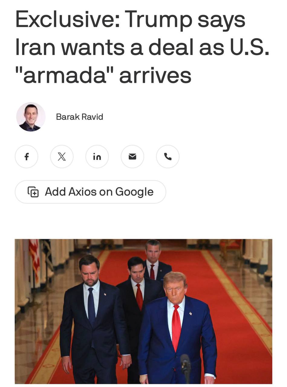 "Они хотят сделку". Трамп допустил дипломатическое решение об Иране, несмотря на отправку ударной армады