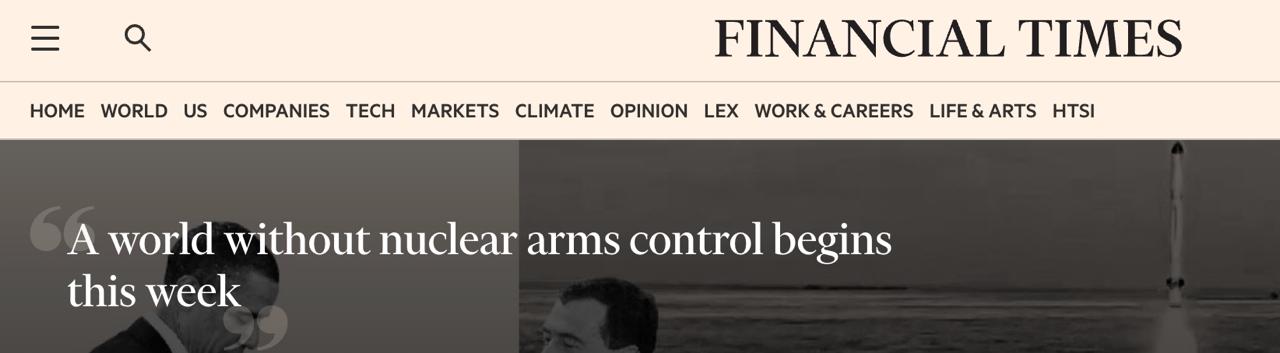 Издание напомнило о предложении президента РФ Владимира Путина, чтобы США и Россия добровольно продолжали соблюдать действующие ограничения после истечения срока договора о мерах по дальнейшему сокращению и ограничению стратегических наступательных вооружений (СНВ-3). Трамп назвал это "хорошей идеей", но так и не дал официального ответа. Он лишь заявил, что предпочел бы "новое, гораздо более выгодное соглашение" с Россией и Китаем. По мнению FT, Трамп ещё может объявить в последнюю минуту, что намерен принять предложение Путина.