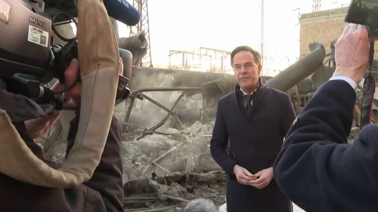 Генерального секретаря НАТО Марка Рютте, который находится с рабочим визитом в Украине, привезли на территорию ТЭЦ в Киеве, по которой сегодня был нанесен удар.