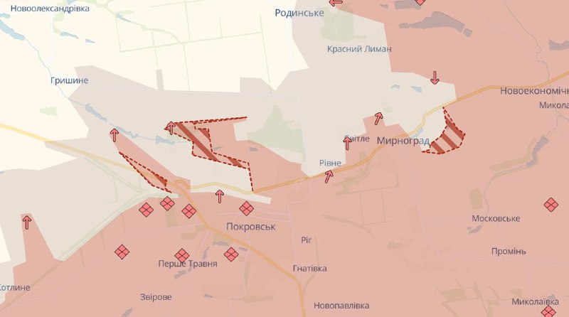 13.04 Армия РФ снова продвинулась в Покровске, а также соседнем Мирнограде и около Северска, сообщает Deep State.