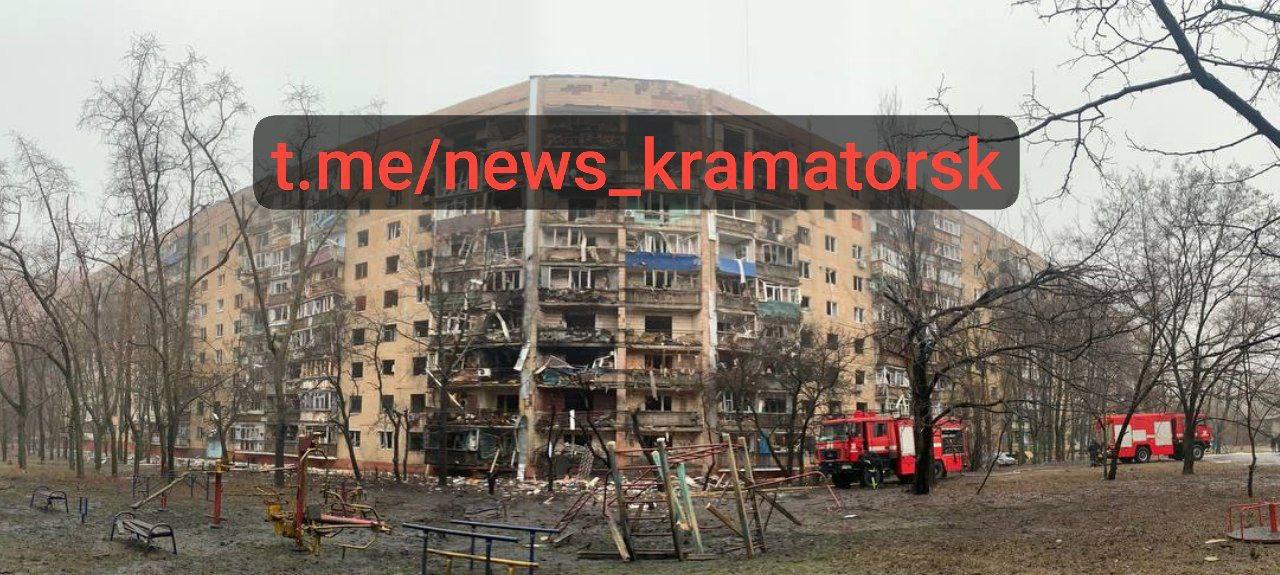 8:25 Ночью был сильный прилет по Краматорску Донецкой области, пострадала жилая многоэтажка. Есть травмированные.