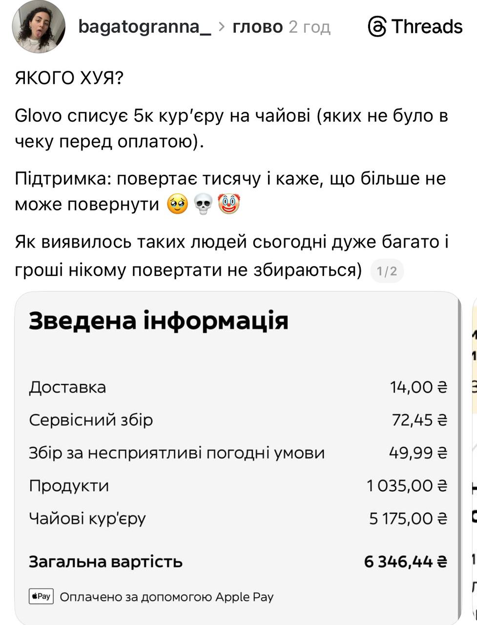 Служба доставки Glovo начала списывать со своих клиентов тысячи гривен чаевых курьерам без предупреждений и возможности вернуть средства.