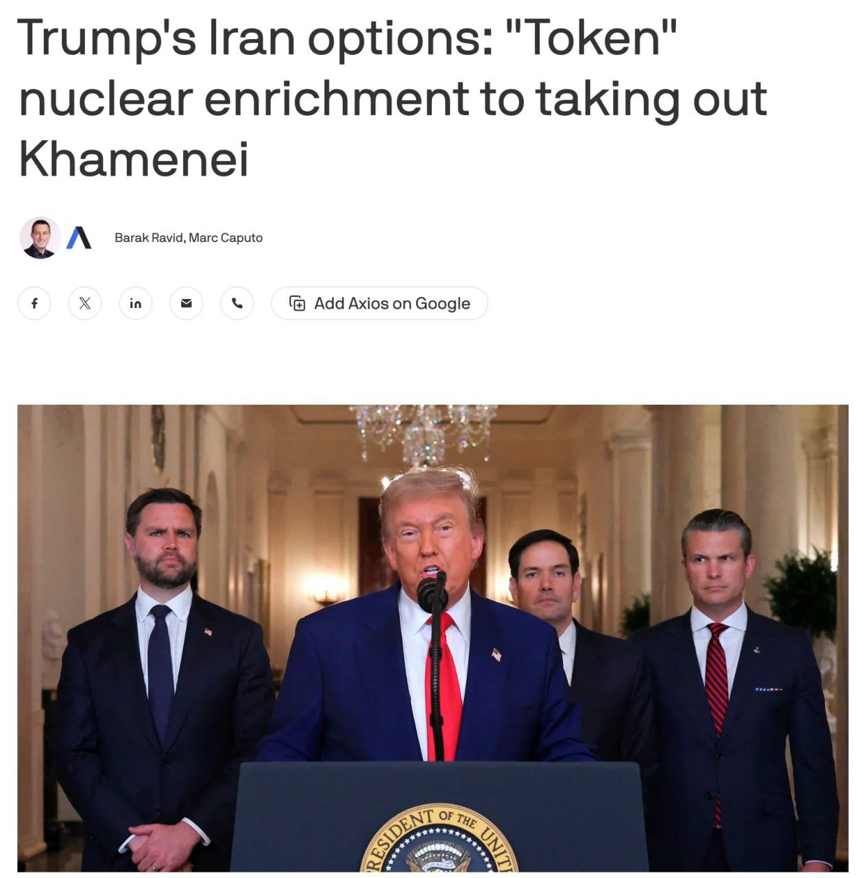 "Президент Трамп готов принять сделку, если она будет содержательной и если он сможет политически "продать" ее внутри страны. Если иранцы хотят избежать удара, им следует предложить нам предложение, от которого невозможно отказаться. Они продолжают упускать окно возможностей", — заявил высокопоставленный американский чиновник.